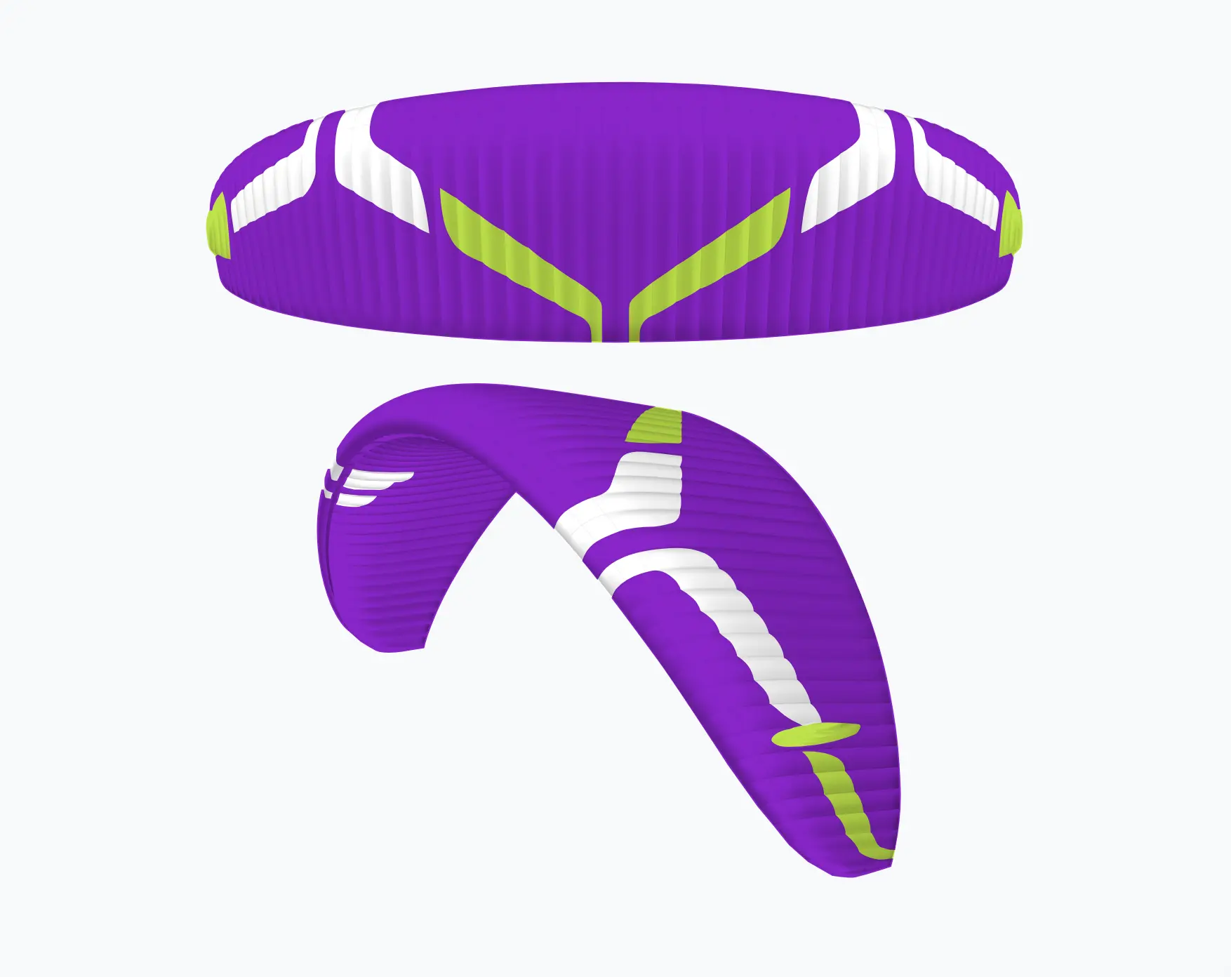 La conception légère et l’optimisation lors de la mise au point ont permis d’obtenir un pilotage énergique qui permet d’être efficace en ascendance. Dotée d’une vitesse max élevée où l’aile reste très stable, d’un profil robuste et d’une finesse au top de sa catégorie, cette aile est idéale pour faire du cross en biplace.